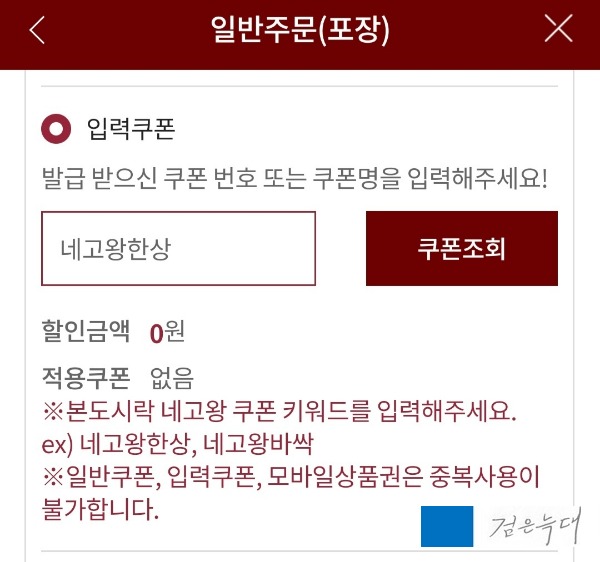 입력쿠폰이라는 항목에 위 사진처럼