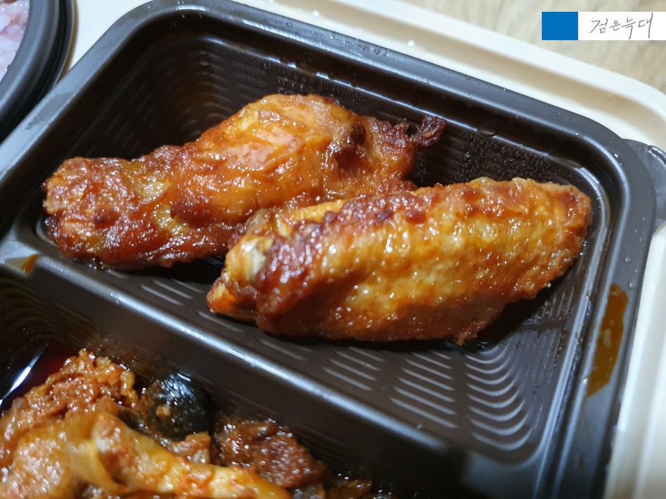 메인 반찬으로는 치킨 윙봉 1개씩,