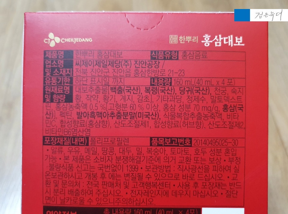 겉 박스보다 홍삼 그림이나 폰트 등이