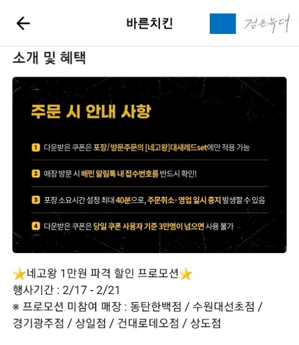 이번에 네고왕의 바른치킨 할인은