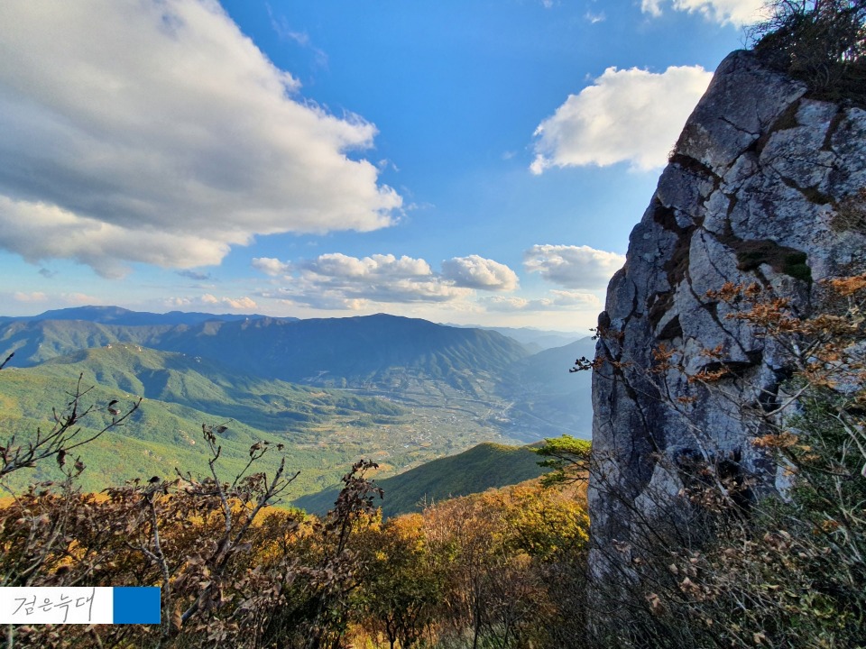 중간에 영남알프스의 전망이 보이는