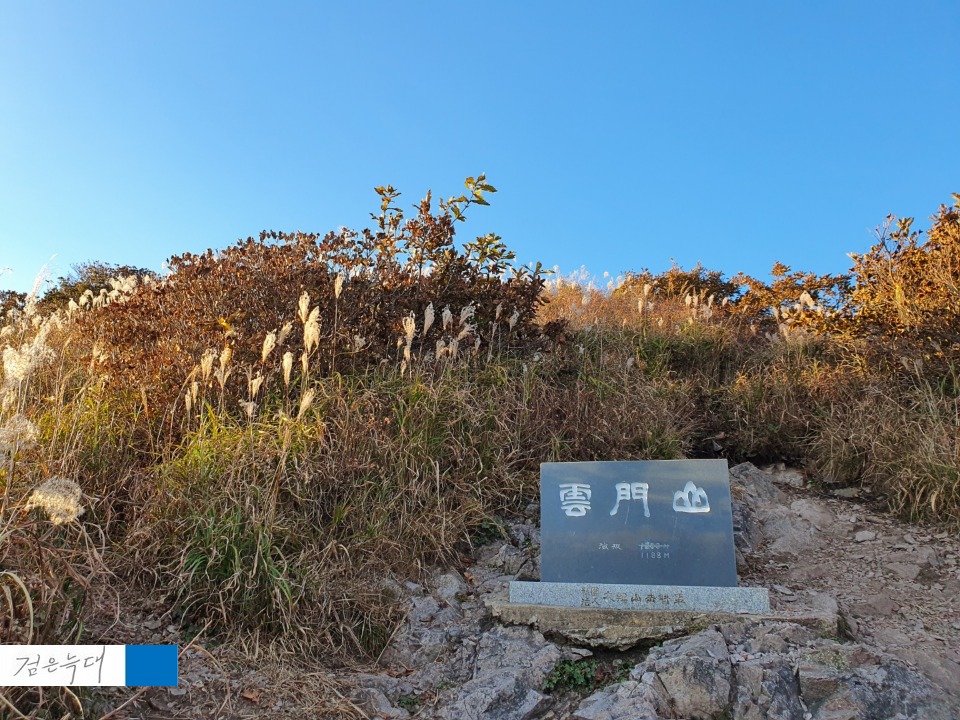 탁 트인 공간에 운문산 정상석이