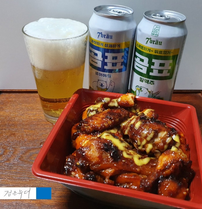 매콤한 치킨인데 맥주 빼놓을 수없죠