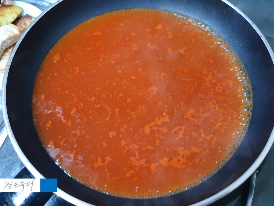 소스 넣고 끓이고 떡 넣고