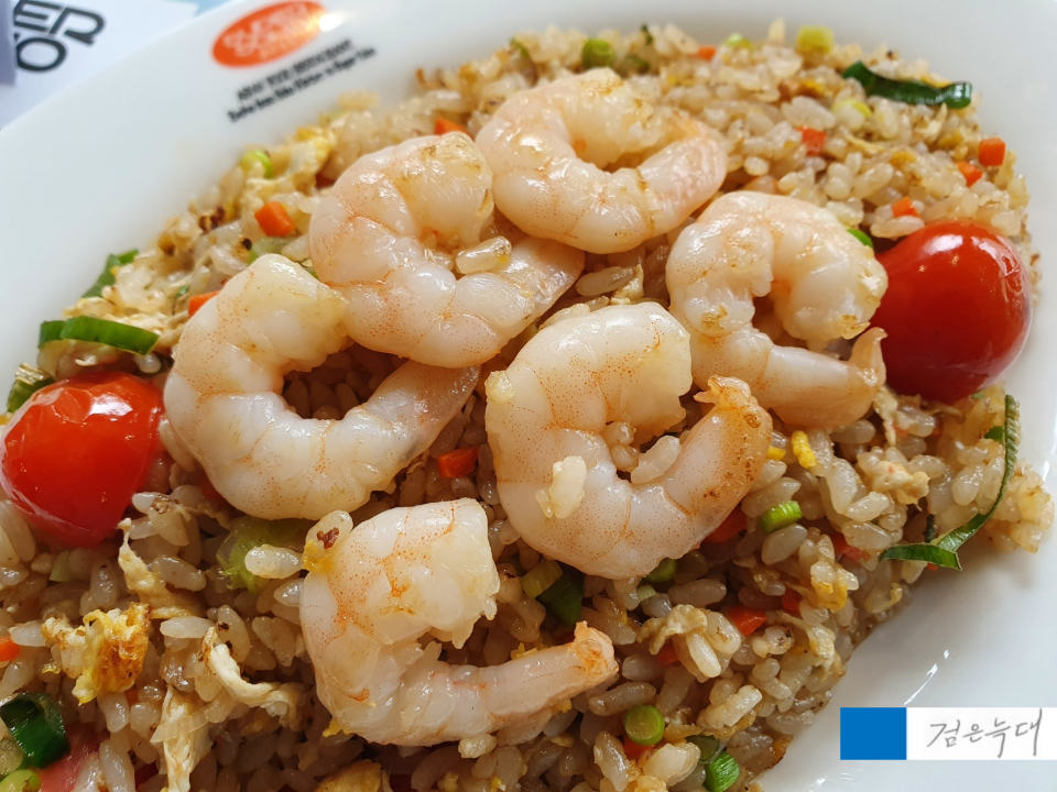 볶음밥에 올라가 있는 새우는