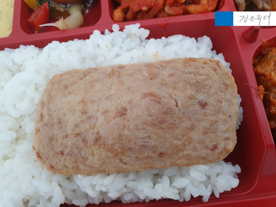 밥 위에 로스팜 한 조각이