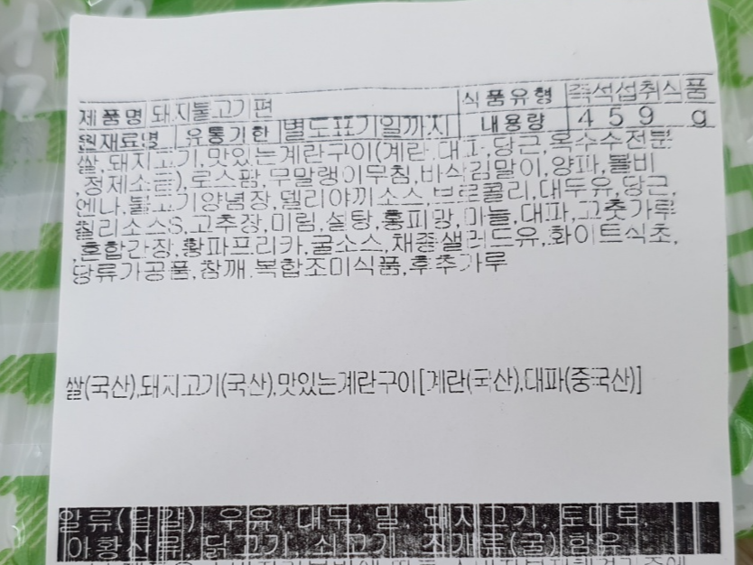 돼지불고기편의 원재료도 참고하세요