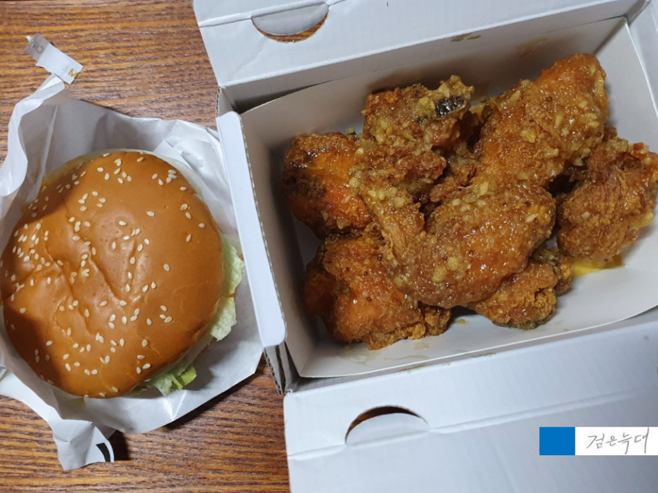 치킨에 버거 메뉴까지 구매 ㅎㅎ