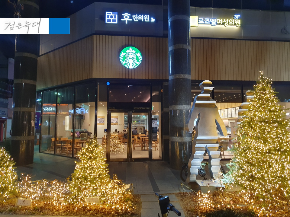 스벅 앞에 조명을 예쁘게