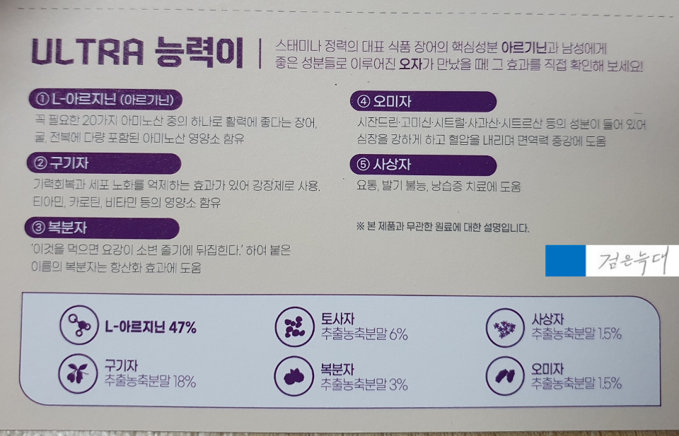 요즘 영양제 중에서도 꽤 유행하고 있는 성분이 바로 마카와 아르기닌입니다 남자에게 좋다는 음식으로 생각나는 장어 꼬리가 있는데요 그 장어에 많이 있는 성분으로 알려진게 바로 아르기닌
