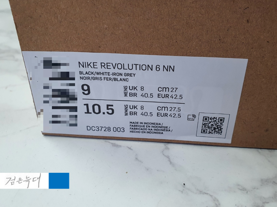 제품의 주황색 신발 박스와는 다른