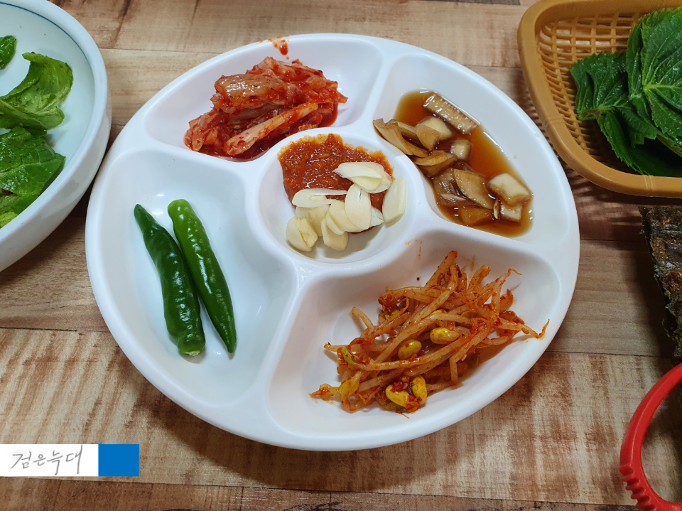 김치나 양파절임, 콩나물 무침 등이