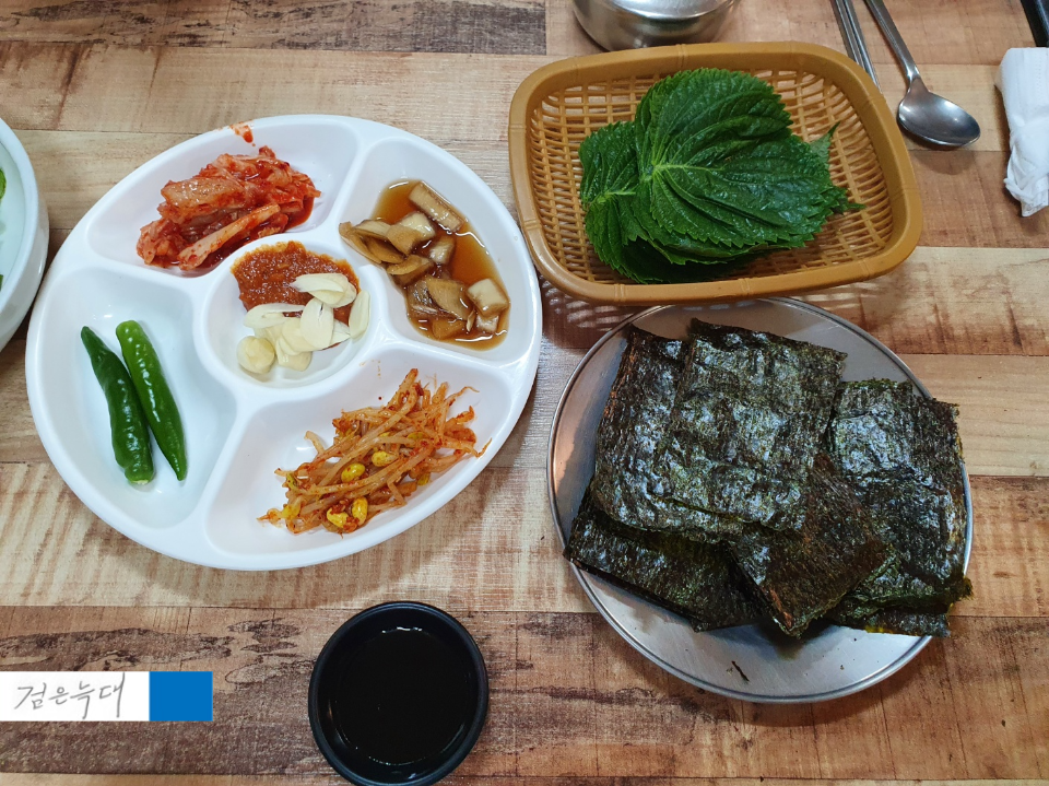 기본반찬으로 나오고 김과 깻잎이