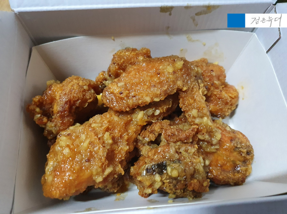 마늘톡겨자치킨을 같이 먹어봤습니다