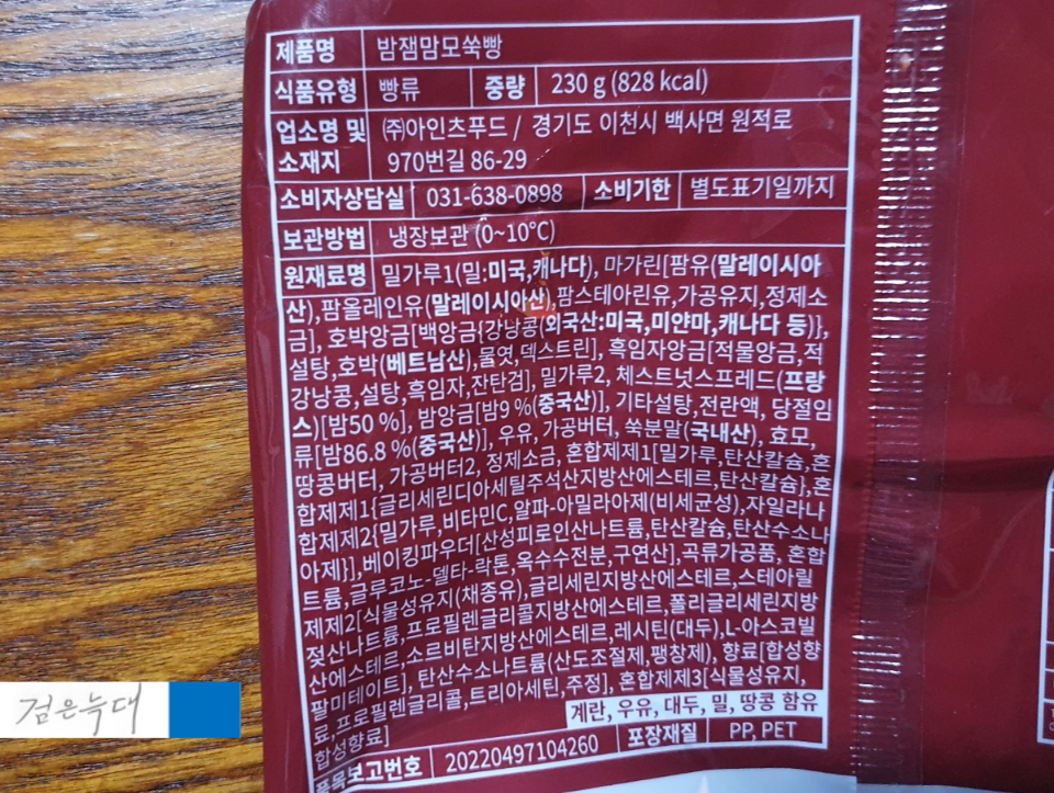 적혀 있고 밤잼맘모쑥빵이 들어간