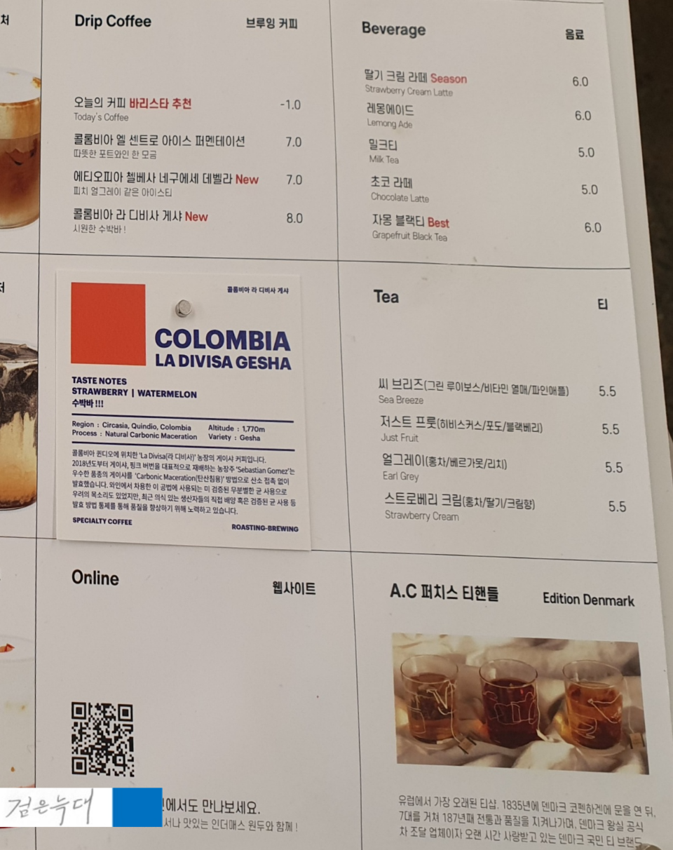 드립커피와 시그니처 메뉴,
