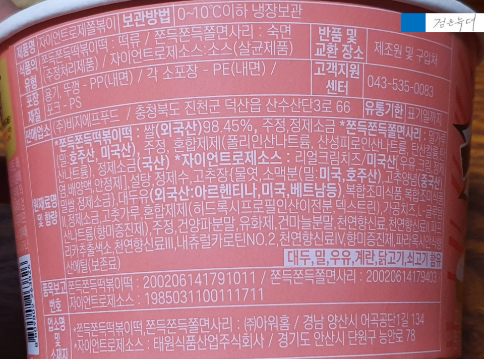 떡볶이떡과 함께 쫄면사리가 들어 있고