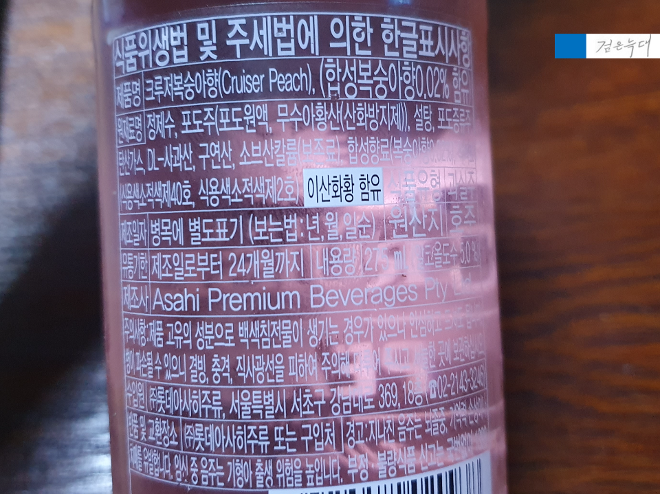 ▷ 복숭아과즙이 아닌 복숭아향 첨가