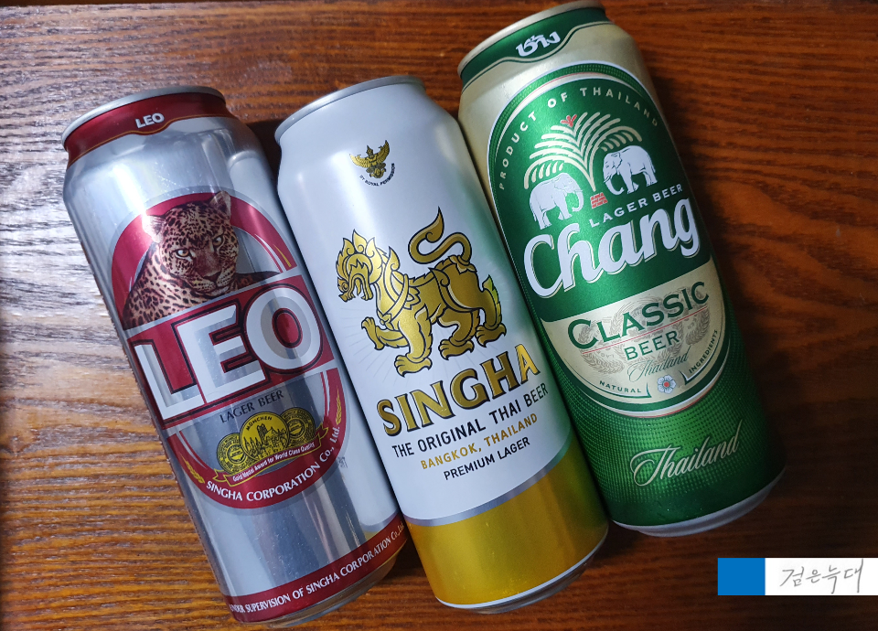 레오맥주, 싱하맥주, 창 클래식 맥주입니다