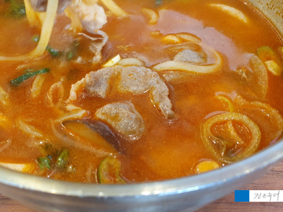 먼저 볼 메뉴는 얼큰육탕면입니다