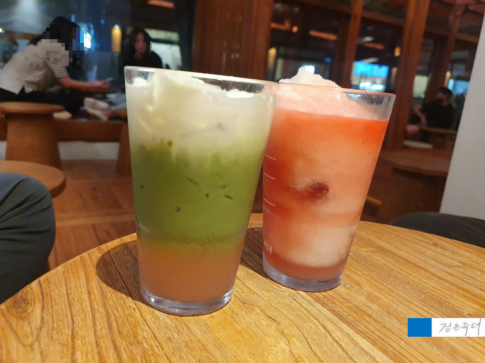 의외로 복숭아와 말차가 잘 어울렸구요
