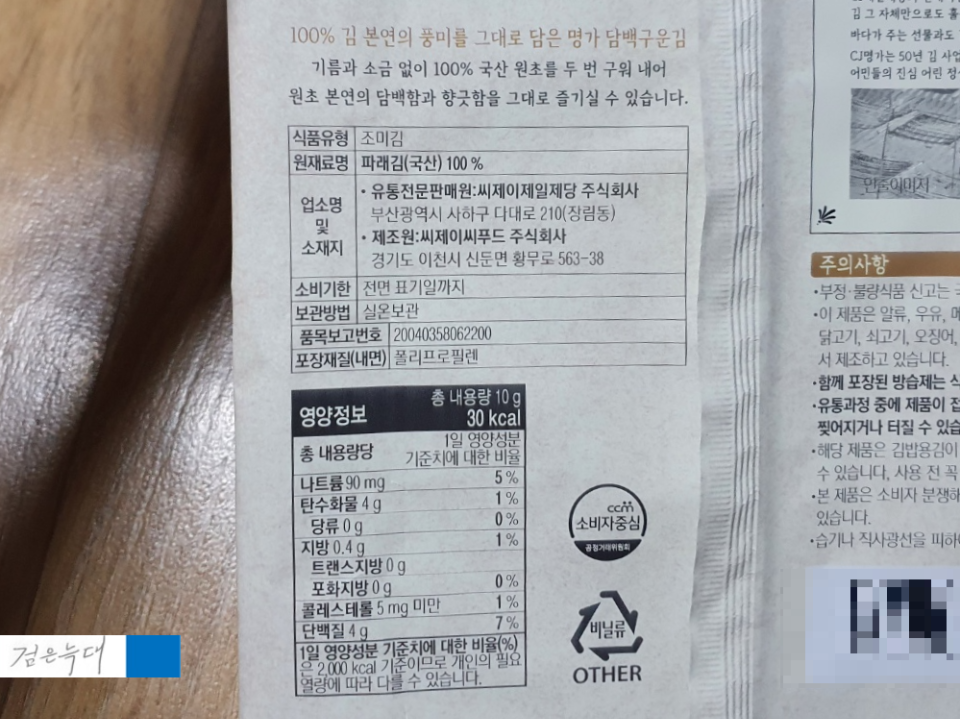 먼저 CJ명가 담백구운김부터 볼까요