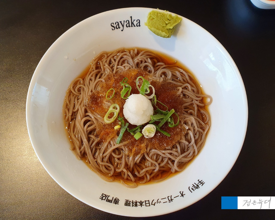 오른쪽은 냉 메밀소바인 사야까소바입니다