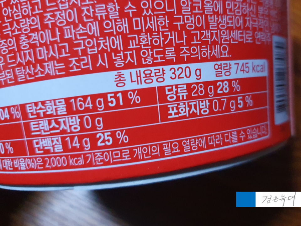 용량은 320g 열량은 745kcal 입니다