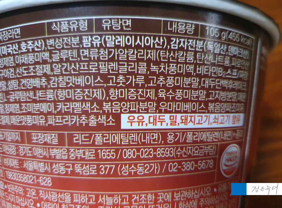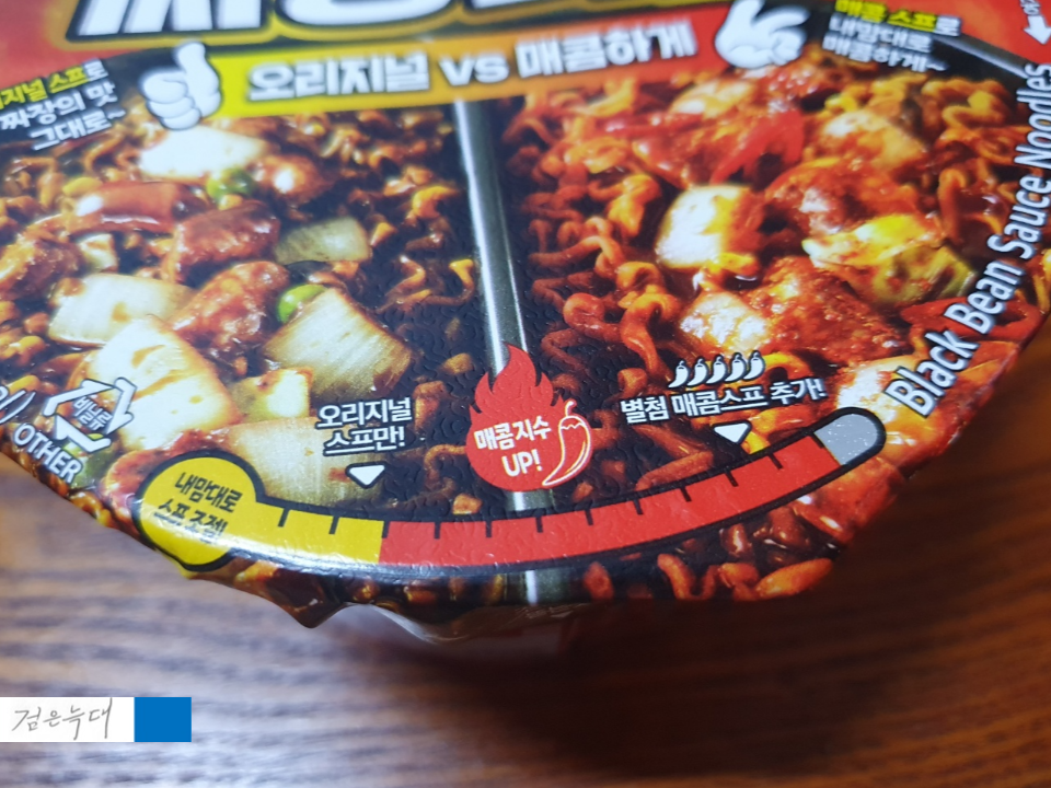 ▷ 일반 짜장라면 스프와 매운 소스 동봉