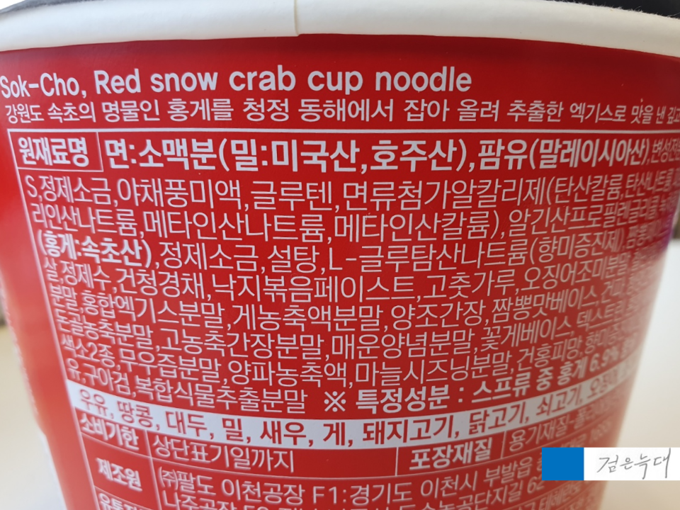 ▷ 속초 홍게의 엑기스가 들어간 컵라면