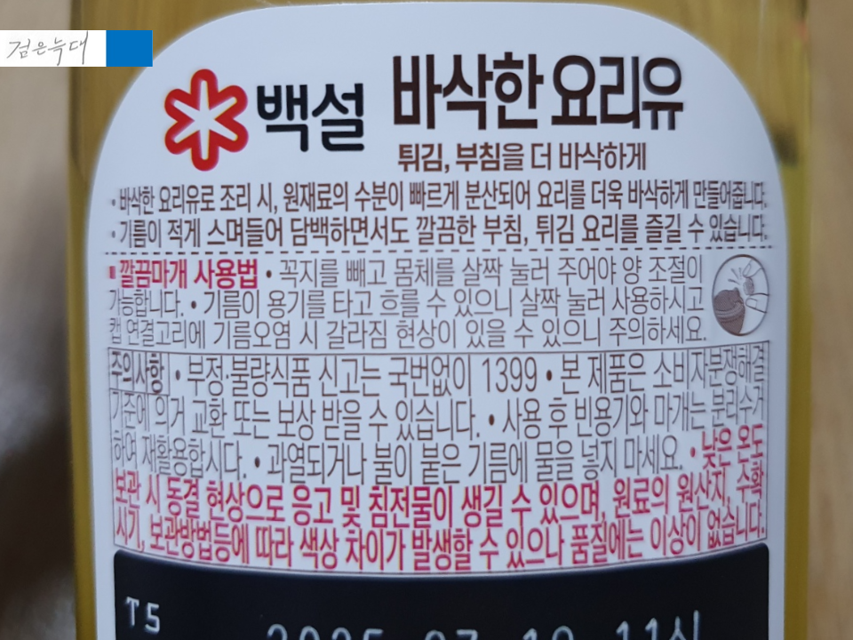 백설 바삭한요리유는 식용유 종류로