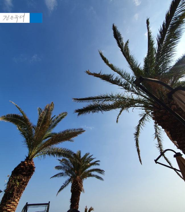 거기에서 야자수가 쭉 뻗어 있는