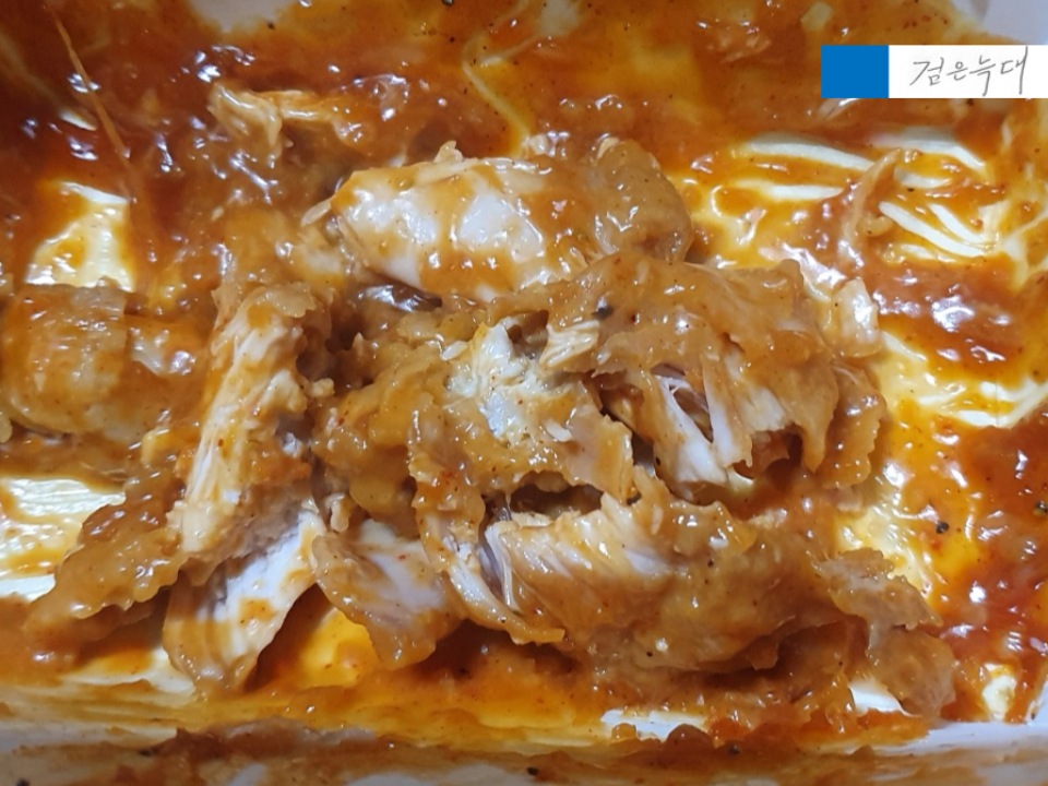 양념에 버무리고 마요네즈로 만든