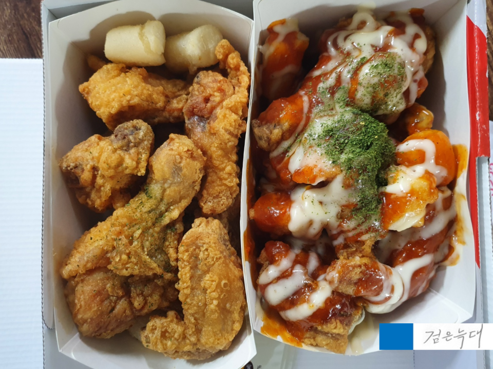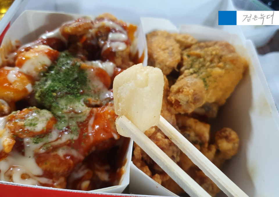 치킨과 함께 떡도 몇 개가