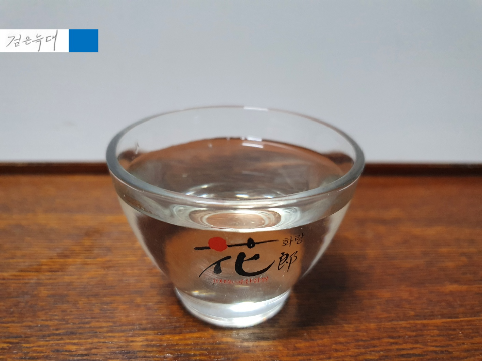 화랑 전용잔에 한 잔 부어 봤습니다