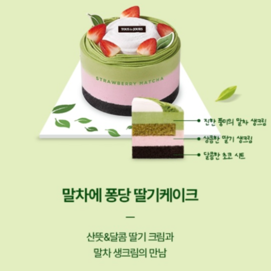 말차에퐁당딸기케이크가 보입니다