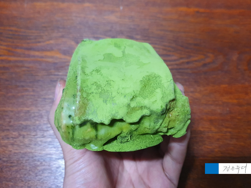 말차 가루가 듬뿍 묻어 있는