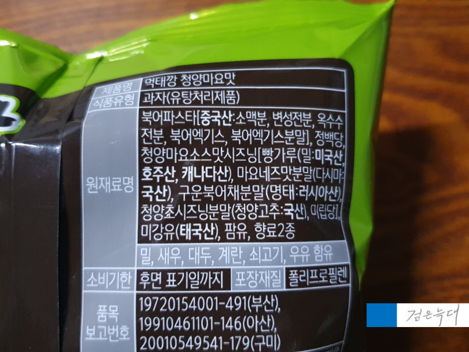 먹태깡 청양마요맛 원재료입니다