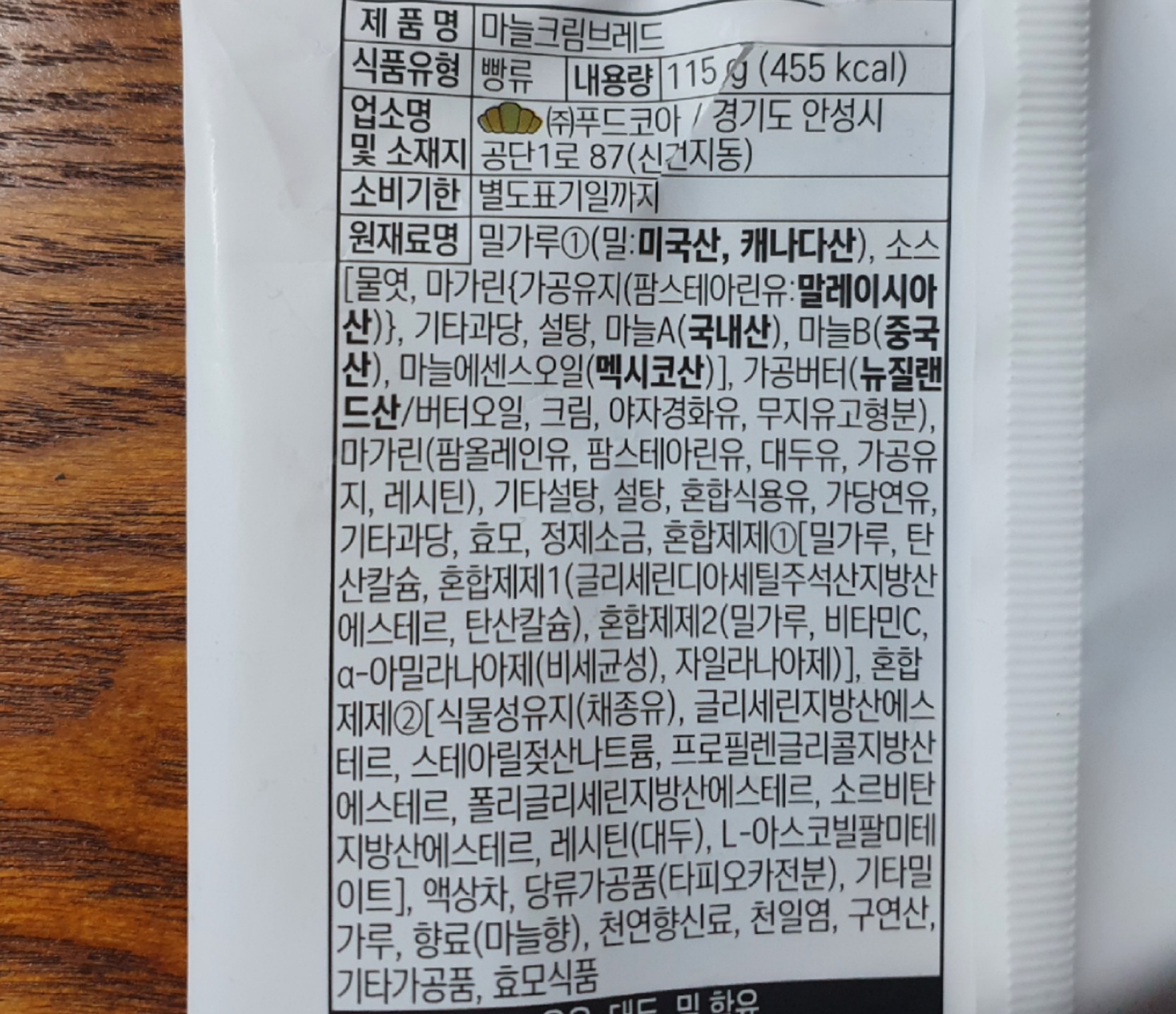 명장마늘크림브레드의 중량은 115ㅎ