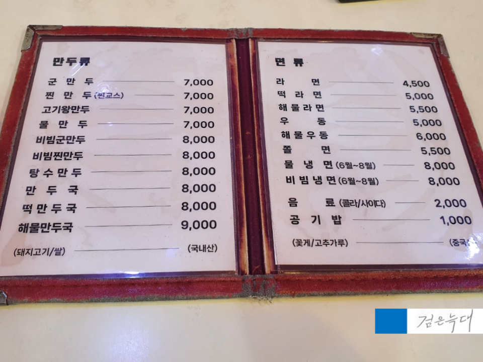 태산만두의 메뉴판입니다