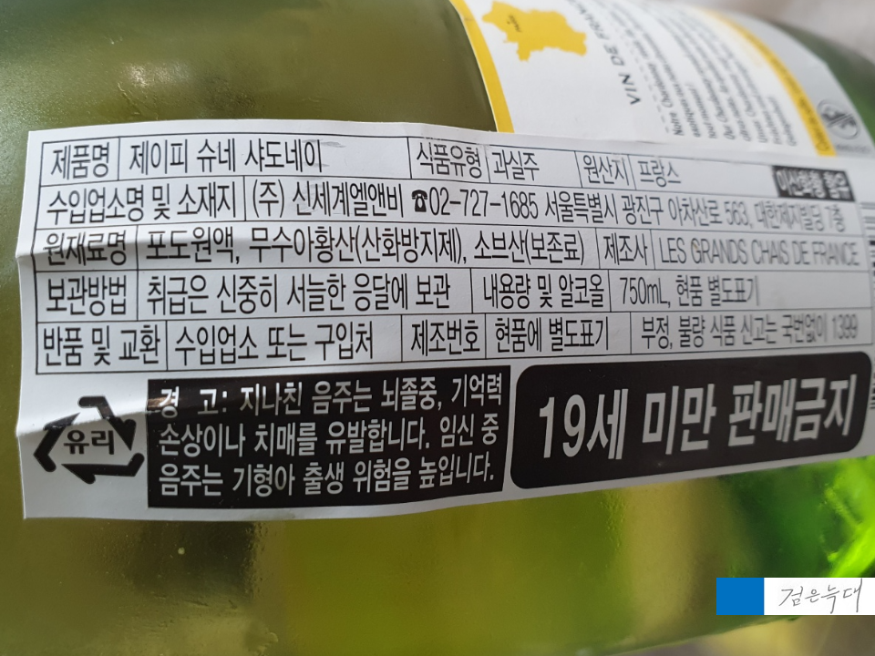 수입한 프랑스와인으로 라벨 뒷 편에는