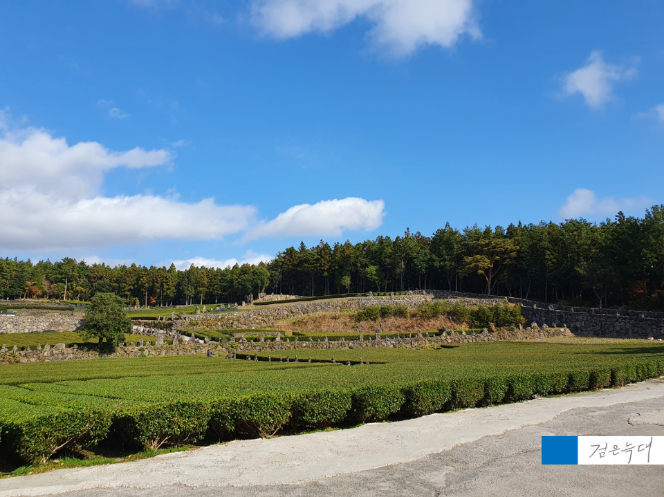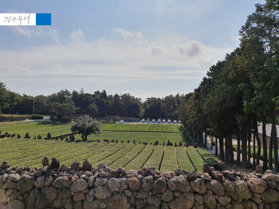 제주도스러운 돌탑과 녹차밭