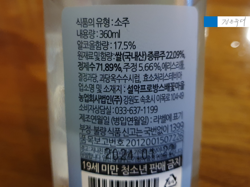 ▷ 설악산 계곡물로 만든 증류소주 첨가
