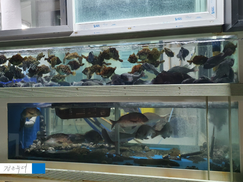 밖에 수조에는 싱싱한 어종들이