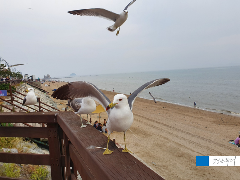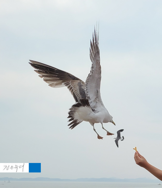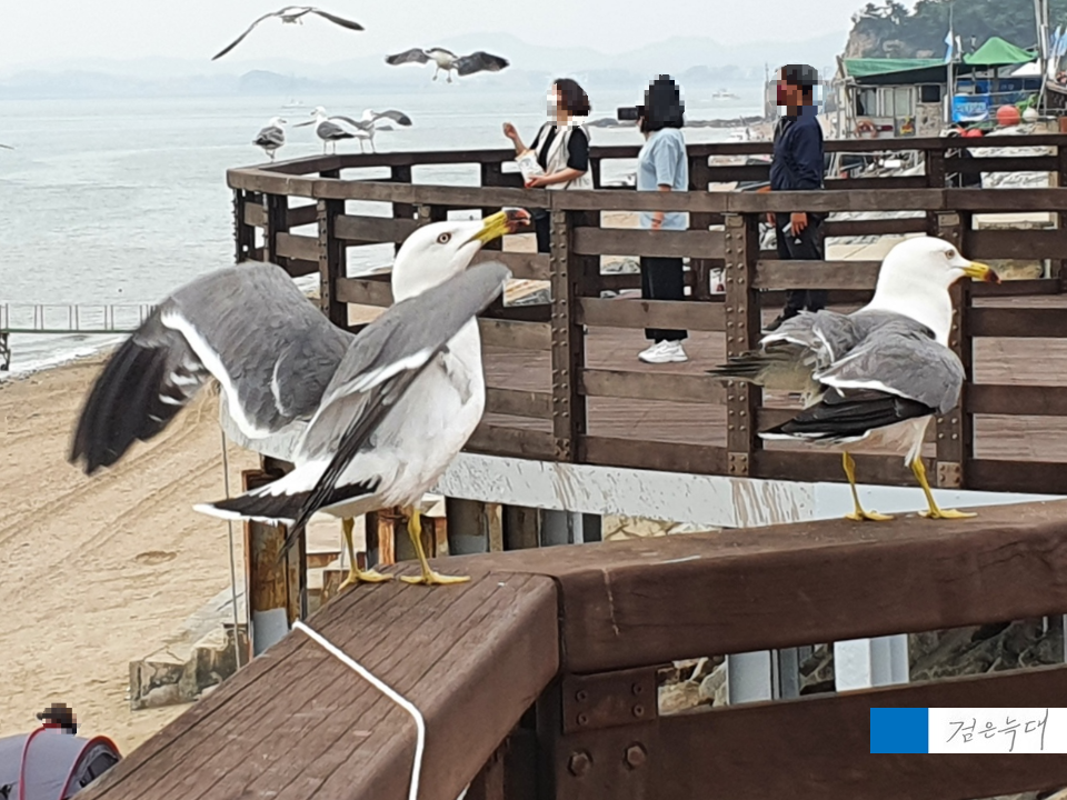 새우깡 봉지를 아예 알고 있는 갈매기들