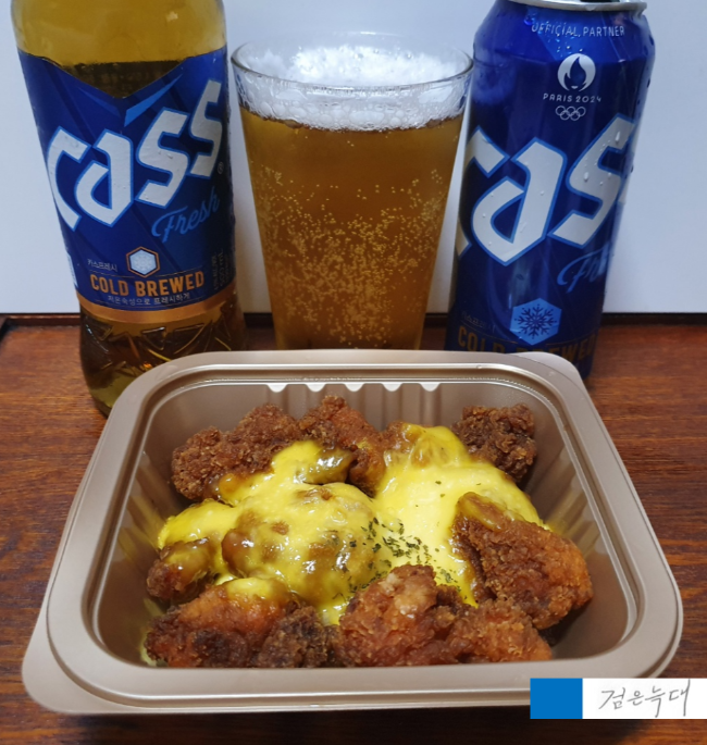 치킨 닭강정과 카스 맥주의 콜라보제품