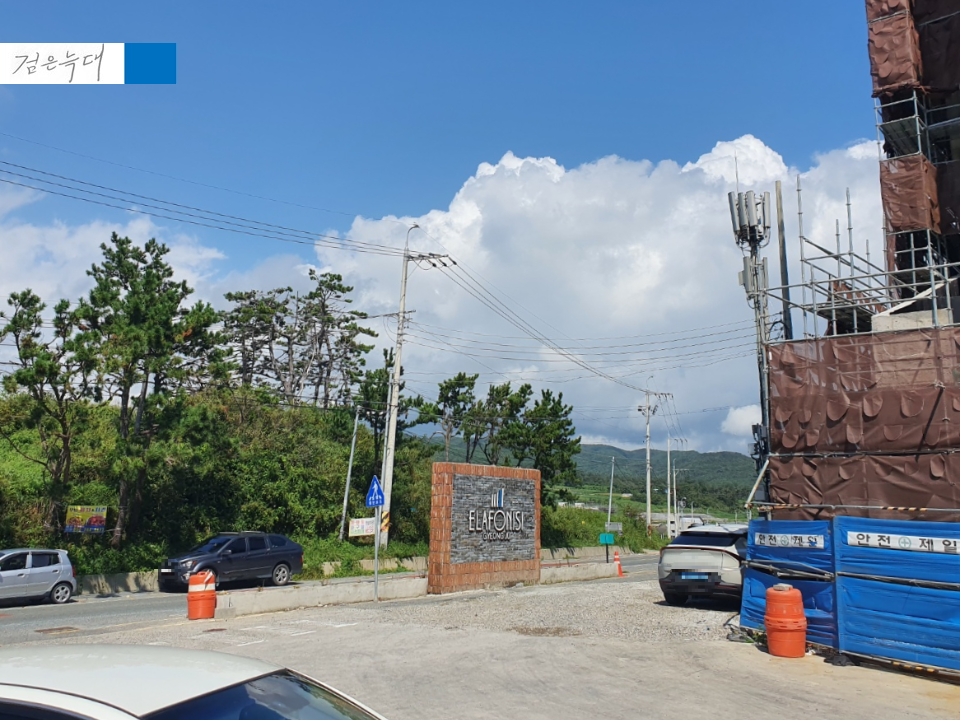 한 쪽에 신축 건물 한 동이