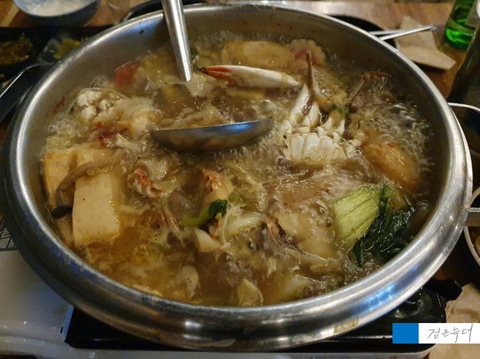 처음 먹어보는 꽃게오뎅탕을 먹었습니다