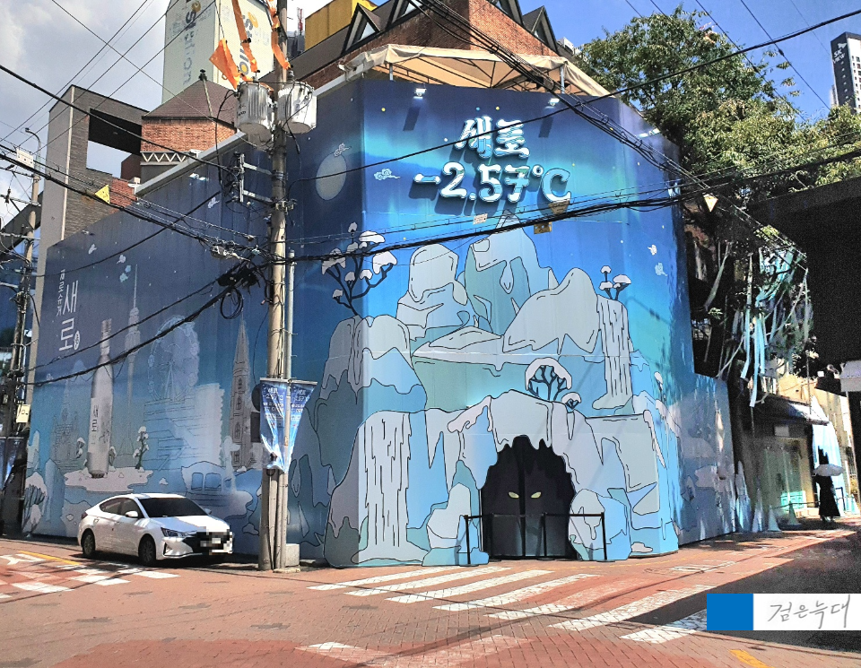 얼음동굴처럼 꾸며진 외벽 옆에는