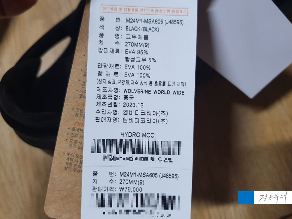 신발 바닥 쪽에 스티커로